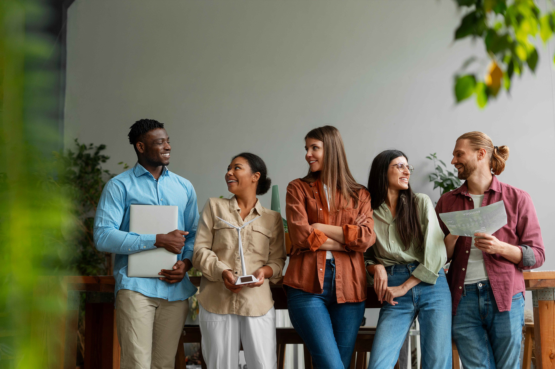 Jovens dinâmicos, criativos, proativos, que valorizam um ambiente colaborativo e sustentável, onde se pratica diversidade e inclusão